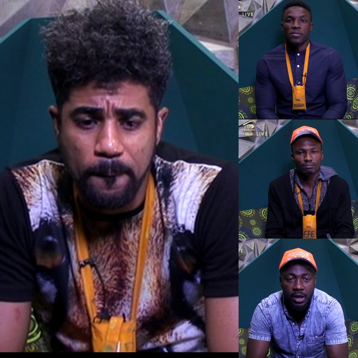 Week 8|Day 50: During the Live Nomination session this evening, the Housemates had 45 seconds to make their Nomination decision and ended up with TBoss, ThinTallTony, Efe and Debie-Rise being nominated and are up for possible Eviction this week.